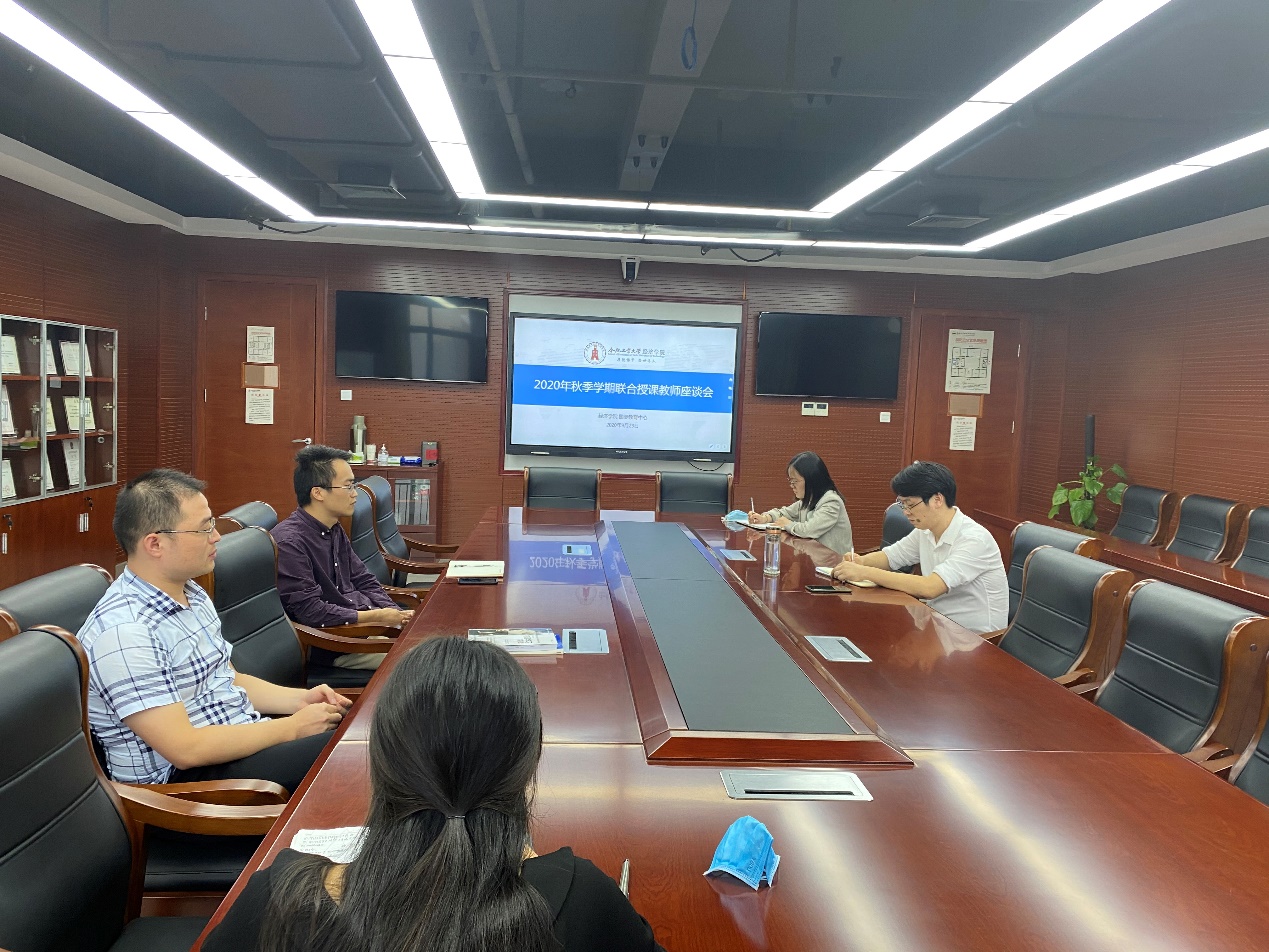 2020年9月23日,必赢优惠y272net2020年秋季学期联合授课教师座谈会在翡翠湖校区科教楼B座1005会议室顺利召开。国际教育中心主任戴前智、联合授课教师郑园琴、贾君君、候伯军等参加了座谈。