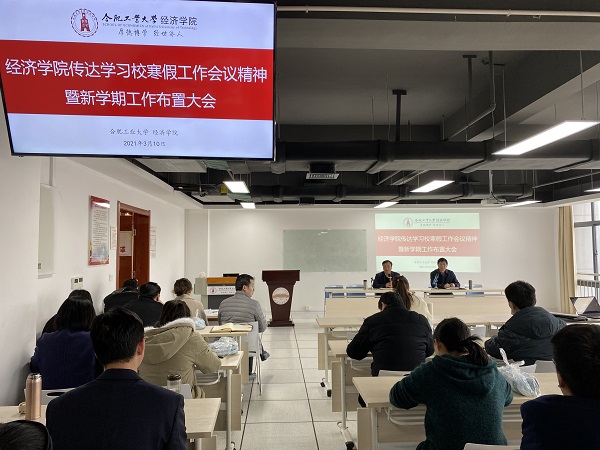 新学期伊始,为向广大教职工传达学校寒假工作会议精神,布置新学期学院工作,激励广大教职工积极进取,聚焦中心工作,更好教书育人,推动学院高质量发展,3月10日下午,学院召开全院教职工大会,传达学习校寒假工作会议精神并对学院新学期重点工作进行布置,院党委书记张炳武主持大会。