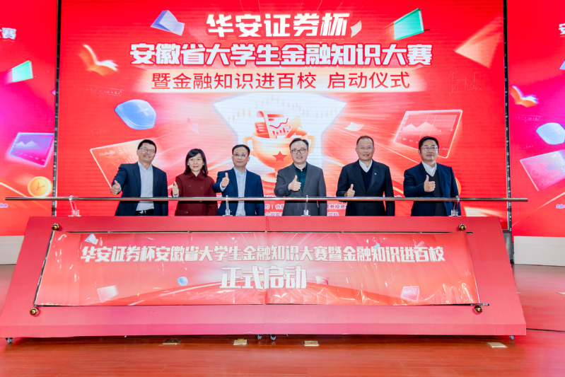 3月24日下午,“华安证券杯”安徽省大学生金融知识大赛暨金融知识进百校启动仪式在翡翠湖校区科教楼A座报告厅举行。共青团安徽省委副书记李波,中证中小投资者服务中心副总经理黄勇,华安证券党委书记、董事长章宏韬,安徽证监局投保处处长杨柳,安徽省金融青联副主席、秘书长陈毓、校团委书记武国剑、必赢优惠y272net院长洪进、党委副书记、纪委书记谢晶晶出席启动仪式。