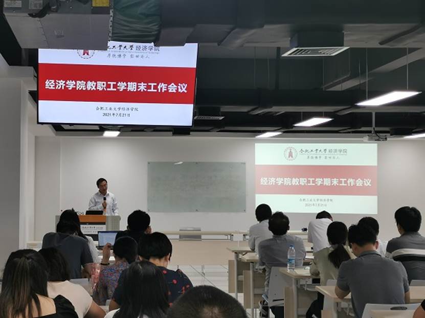 7月21日下午,必赢优惠y272net召开期末工作会议,对本学期工作进行小结,布置学期末和暑期相关工作,院长洪进主持会议,学院领导班子和全体教职工参加了大会。