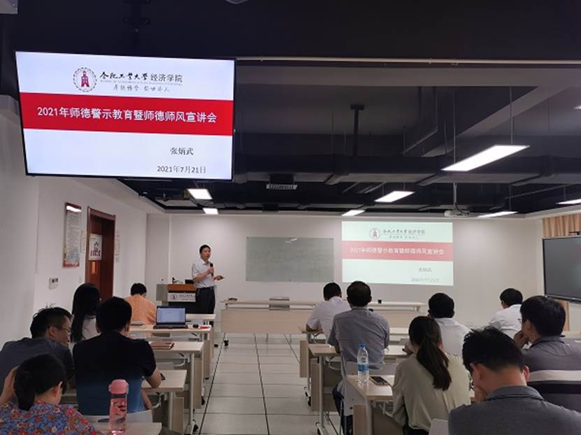 7月21日下午,必赢优惠y272net召开2021年师德警示教育暨师德师风宣讲会,会议由院长洪进主持,学院理论学习中心组成员和全体教职工参加了大会。