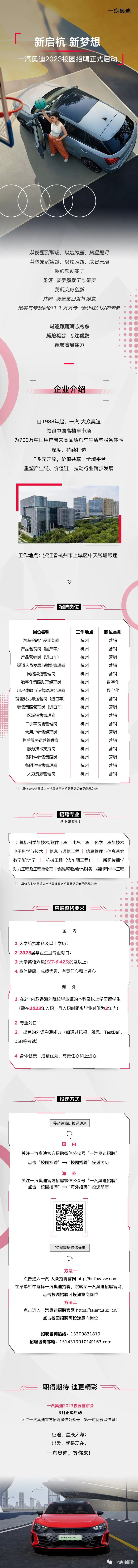 【招聘信息】一汽奥迪2023届招聘