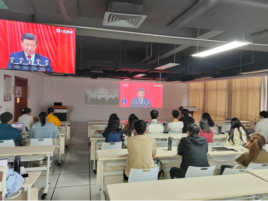 在这一重要的历史节点,必赢优惠y272net组织第68期党校入党积极分子班、学院团校第11期青年马克思主义者培养“经世济民”班等于科教楼B座10层等地点集中观看党的二十大开幕会。同学们佩戴口罩、神情庄重,时而埋头笔记,时而屏息沉思,在认真聆听习近平总书记代表党的第十九届中央委员会作的报告。同时,学院25个本科生、9个研究生班级团支部均通过多种形式组织观看直播。