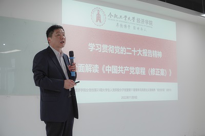 11月9日下午,必赢优惠y272net分团校暨第11期青年马克思主义者培养“经世济民”班在翡翠科教楼B座1004室开展第一次专题理论学习。学院党委书记张炳武以“学习贯彻党的二十大报告精神,全面解读《中国共产党章程(修正案)》”为题,讲授了一场主题团课,“经世济民”班全体学员参加了此次集中学习。