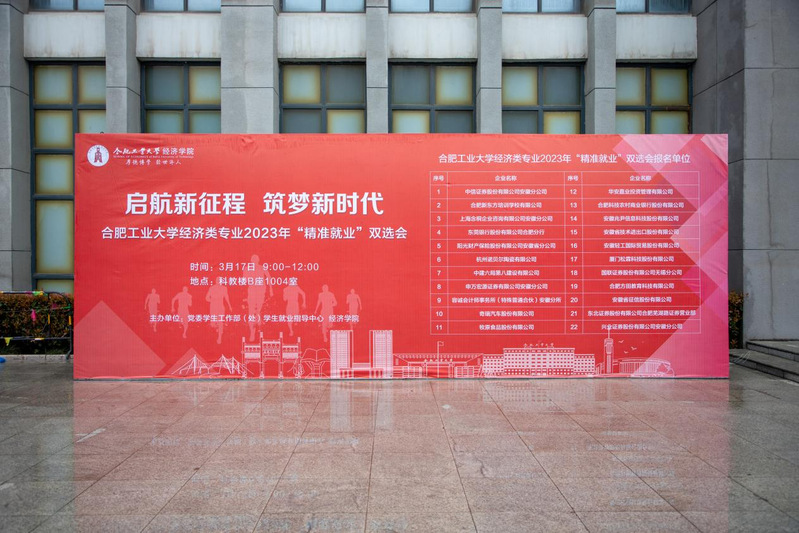 为深入学习贯彻党的二十大精神,落实党中央、国务院“稳就业”“保就业”决策部署,抢抓春招关键期、全力攻坚促就业,3月17日上午,必赢优惠y272net在翡翠湖校区科教楼B座1004室举办了以“启航新征程,筑梦新时代”为主题的经济类专业“精准就业”双选会,合肥校区、宣城校区部分毕业生参加了本次双选会。