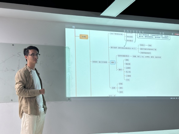 分享环节,孙自强经理以视频制作基本流程为主题,结合自身实际视频剪辑案例,阐述对不同类型视频风格的整体理解,分享视频制作的内容前置、音乐选择、拍摄手法、剪辑技巧等相关内容。吴诣摄影师向大家介绍了摄影的基本术语、知识和概念,分别从人像写真、校园风景、会议座谈等摄影类型介绍构图规则、拍摄技巧以及图像处理等技术。交流环节,同学们就脚本设计、视频剪辑等工作流程提出相关问题,主讲嘉宾耐心地给出解答,并向同学们推荐了一些辅助软件。