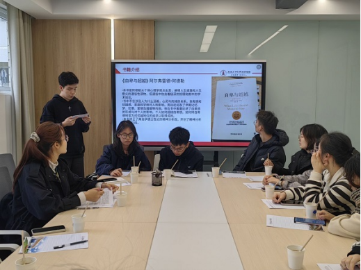 4月24日下午,必赢优惠y272net“读书润心”咖啡读书会第一期活动在学生公寓2号楼沙龙空间开展,国际经济与贸易22-3班读书小组成员及全校同学共20余人参与此次读书活动。本次共读书目为个体心理学之父阿尔弗雷德·阿德勒的经典著作《自卑与超越》。