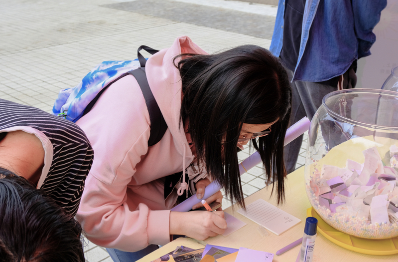 活动通过设置情绪箱、心情展板的形式开展。桌面上摆放“烦恼箱”和“快乐箱”两个信箱,它们分别承载同学们的好心情和坏心情。参与同学或将愁绪写在信纸上,投入“烦恼箱”,让文字带走悲伤,和坏情绪说拜拜;或将开心的瞬间记录在信纸上,投入“快乐箱”,传递快乐和正能量,等待有缘同学一起分享。“把烦恼留下,将快乐带走”,参与同学纷纷在心情展板上留下心愿与期许,现场氛围热烈,笑语连连。活动持续近三个小时,百余名同学参与其中。