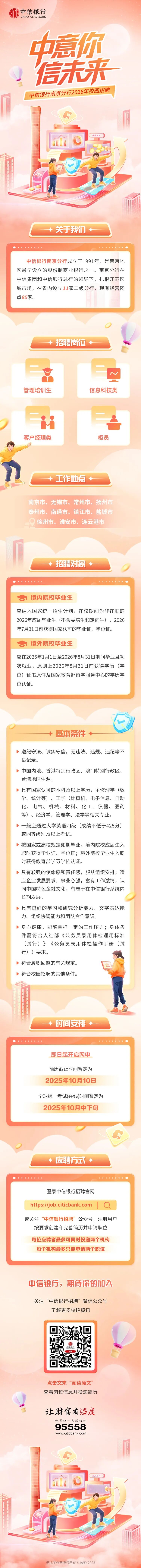 【中信银行南京分行】2026届校园招聘现已正式启动