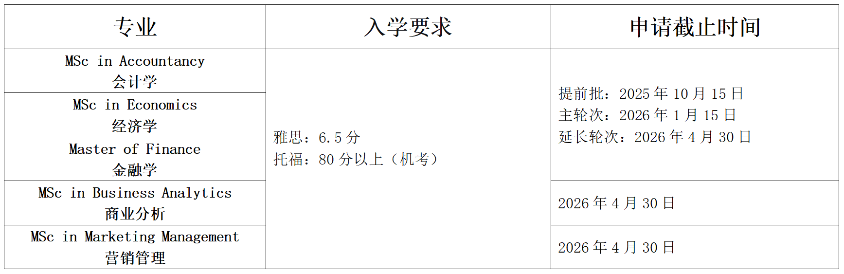 商科主要有以下专业可申请