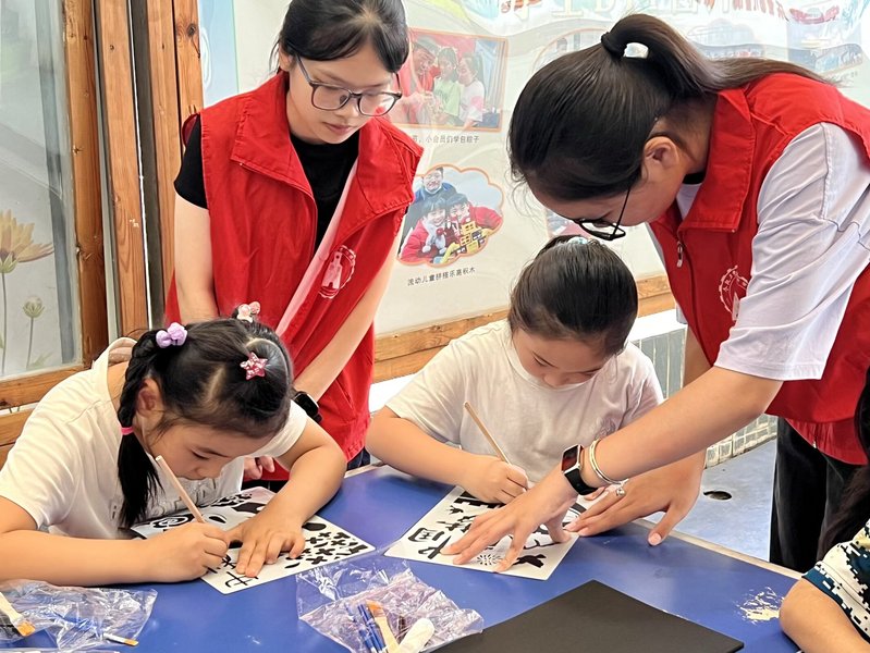中秋主题环节中,志愿者通过介绍中秋传统习俗,引导孩子们理解团圆与感恩的文化内涵。在古典诗词赏析部分,苏轼《水调歌头》中“但愿人长久,千里共婵娟”的美好意境,让孩子们深刻体会到中华文化中对团圆和睦的向往。活动还设置了猜灯谜、制作金箔画等互动环节,孩子们在志愿者指导下,创作出一幅幅闪耀着金色光芒的主题作品,在动手实践中感受传统文化的独特魅力。